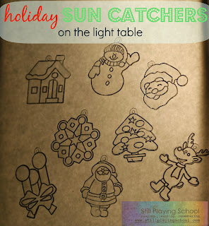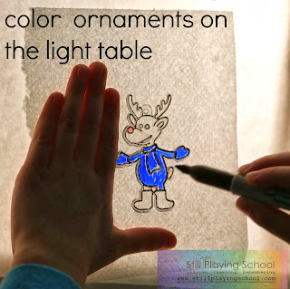 Our holiday sun catcher ornaments were extra inviting to color on the light table!