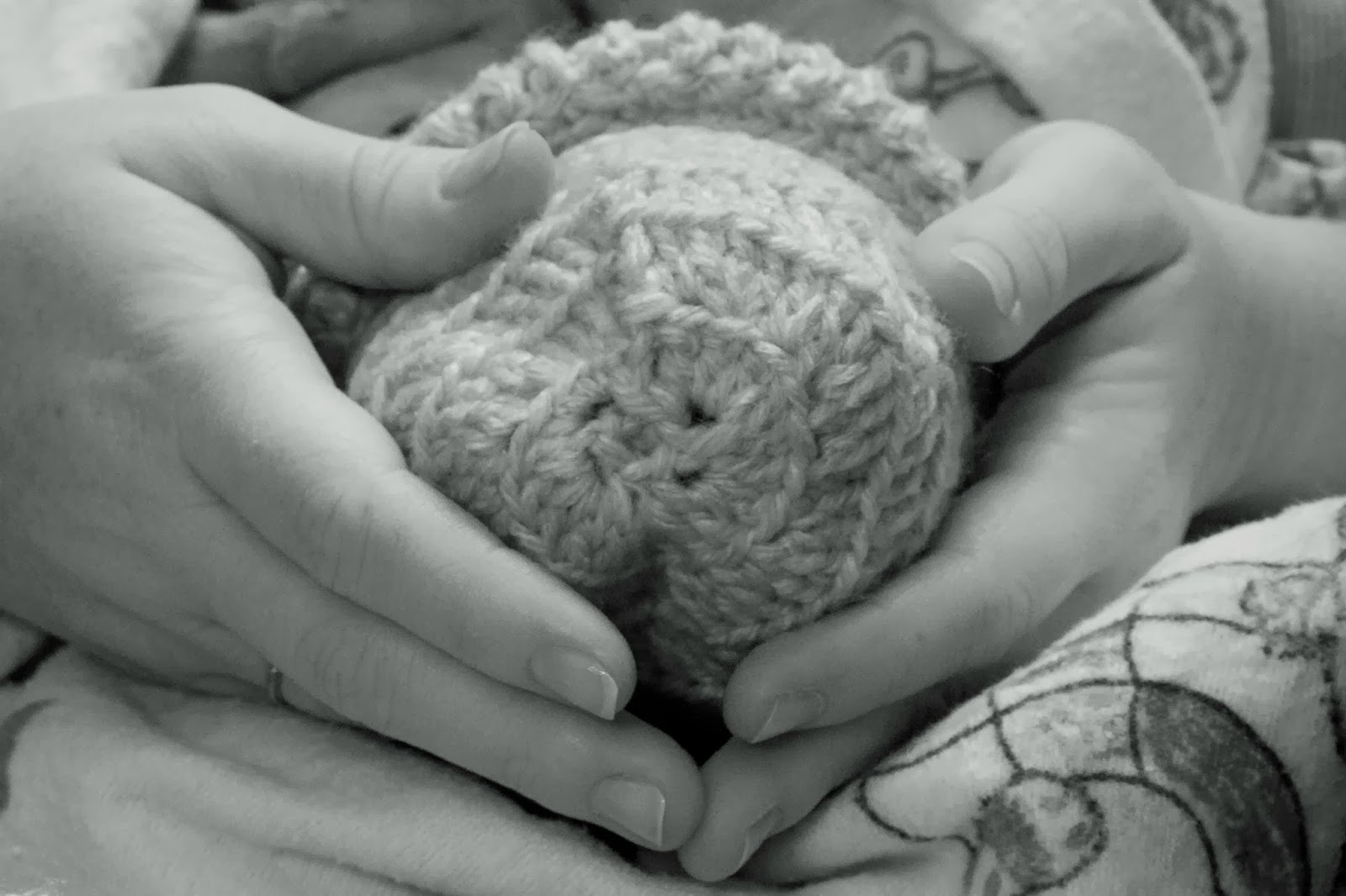 Heather also quickly crocheted us several small hats for Violet and the one that fit, the infamous white hat with the pink flower, was the exact same size as the one that fit Joshua.